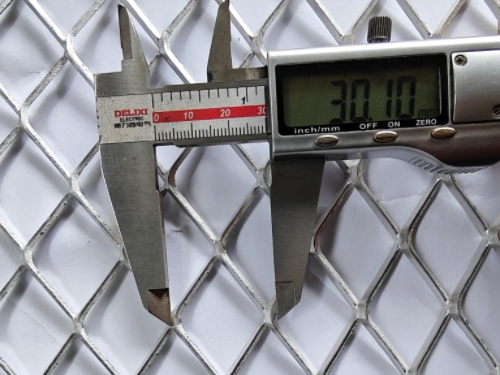 這個(gè)大小主要看拉伸鋁板網(wǎng)的進(jìn)料大小(也便是短節(jié)距或是對角線較小的那個(gè)網(wǎng)孔的大?。M(jìn)料大,選用相同的板做成的拉伸鋁板網(wǎng)就越長,進(jìn)料小則短一些。