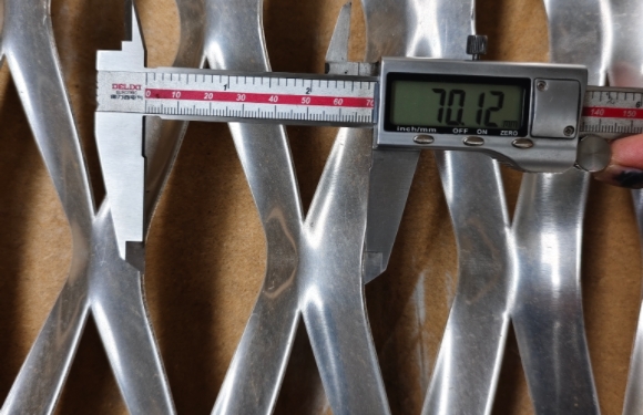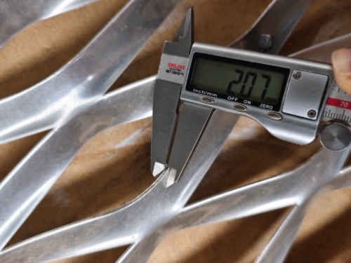 這個(gè)大小主要看拉伸鋁板網(wǎng)的進(jìn)料大?。ㄒ脖闶嵌坦?jié)距或是對角線較小的那個(gè)網(wǎng)孔的大?。M(jìn)料大,選用相同的板做成的拉伸鋁板網(wǎng)就越長,進(jìn)料小則短一些。