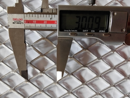這個大小主要看拉伸鋁板網(wǎng)的進(jìn)料大?。ㄒ脖闶嵌坦?jié)距或是對角線較小的那個網(wǎng)孔的大小),進(jìn)料大,選用相同的板做成的拉伸鋁板網(wǎng)就越長,進(jìn)料小則短一些。